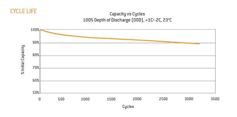 Sehr hohe kontinuierliche Entladeleistung bei 10 °C – 200 A, Burst-Leistung – 600 A.
